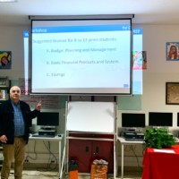 Volgens het concept van het wereldcafé organiseerden we een workshopsessie voor deelnemers om ideeën te bedenken hoe ze de inhoud van financiële geletterdheid in hun lessen en activiteiten kunnen integreren, evenals een spel genaamd “Verankering”, dat de presentaties begeleidde en inzicht gaf in hoe trends, waaronder financiële, ons kunnen “verankeren” aan bepaalde waarden, waarderingen of bedragen, zelfs als die niet overeenkomen met de realiteit van het moment. Zeer positieve feedback van de deelnemers.